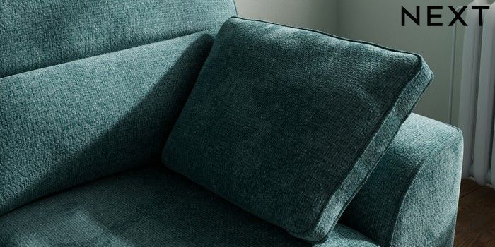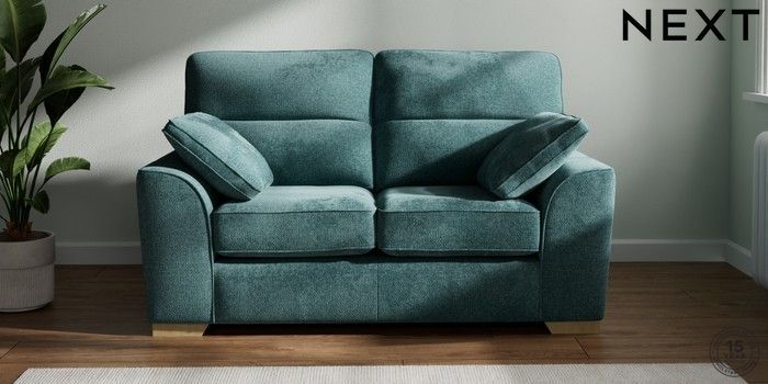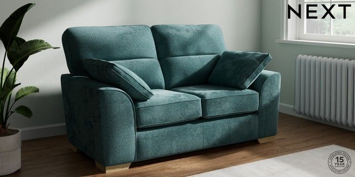 7.2.10 Stamford Highback 2 Seater Small Sofa Chunky Chenille Mid Teal Green Large Square Angle - Light | Made Click here to use our website with more accessibility support, for example screen readers