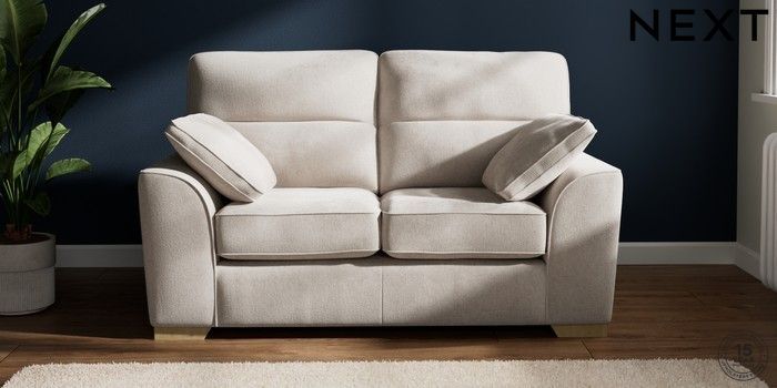 7.2.10 Stamford Highback 2 Seater Small Sofa Chunky Chenille Oyster Large Square Angle - Light | Made Click here to use our website with more accessibility support, for example screen readers
