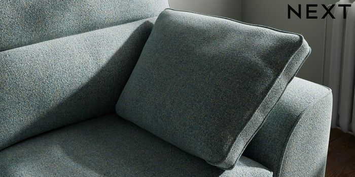 7.2.10 Stamford Highback 2 Seater Small Sofa Chunky Marl Mid Blue Large Square Angle - Brushed Brass | Made Click here to use our website with more accessibility support, for example screen readers