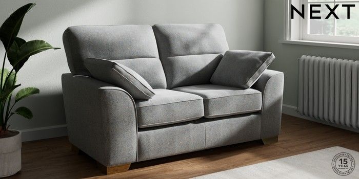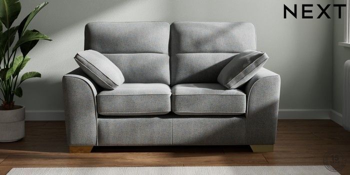 7.2.10 Stamford Highback 2 Seater Small Sofa Chunky Marl Mid Grey Large Square Angle - Brushed Brass | Made Click here to use our website with more accessibility support, for example screen readers