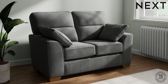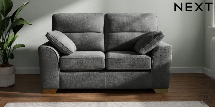 7.2.10 Stamford Highback 2 Seater Small Sofa Chunky Texture Dark Grey Large Square Angle - Brushed Brass | Made Click here to use our website with more accessibility support, for example screen readers