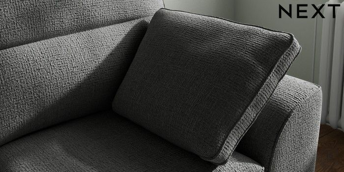 7.2.10 Stamford Highback 2 Seater Small Sofa Chunky Texture Dark Grey Large Square Angle - Chrome Metal | Made Click here to use our website with more accessibility support, for example screen readers