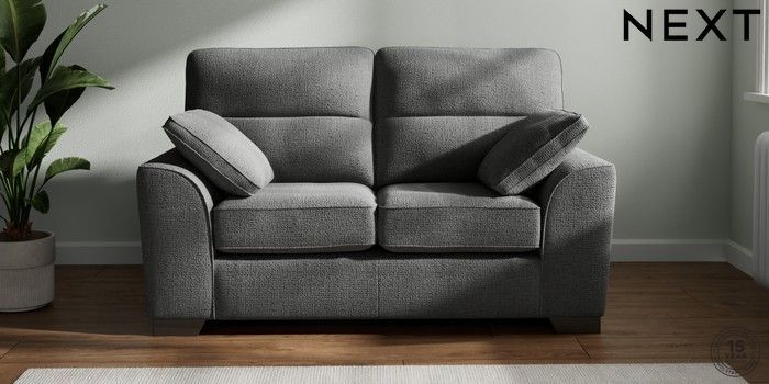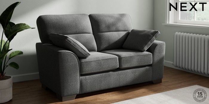 7.2.10 Stamford Highback 2 Seater Small Sofa Chunky Texture Dark Grey Large Square Angle - Gunmetal | Made Click here to use our website with more accessibility support, for example screen readers