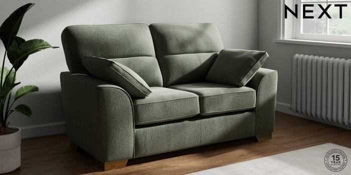 7.2.10 Stamford Highback 2 Seater Small Sofa Chunky Texture Mid Forest Green Large Square Angle - Brushed Brass | Made Click here to use our website with more accessibility support, for example screen readers