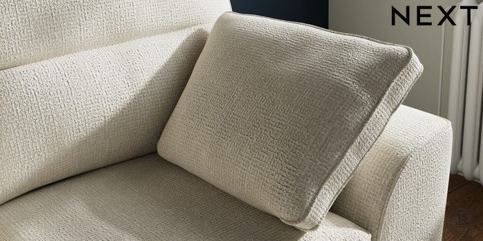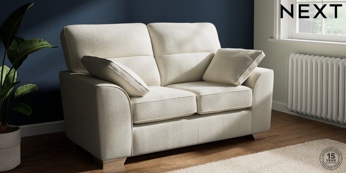 7.2.10 Stamford Highback 2 Seater Small Sofa Chunky Texture Oyster Large Square Angle - Chrome Metal | Made Click here to use our website with more accessibility support, for example screen readers