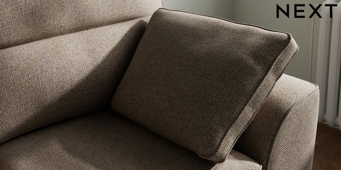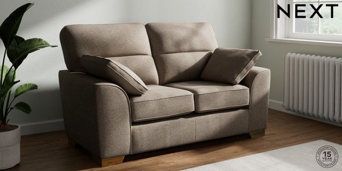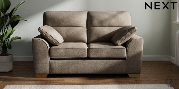 7.2.10 Stamford Highback 2 Seater Small Sofa Chunky Weave Dark Natural Large Square Angle - Brushed Brass | Made Click here to use our website with more accessibility support, for example screen readers