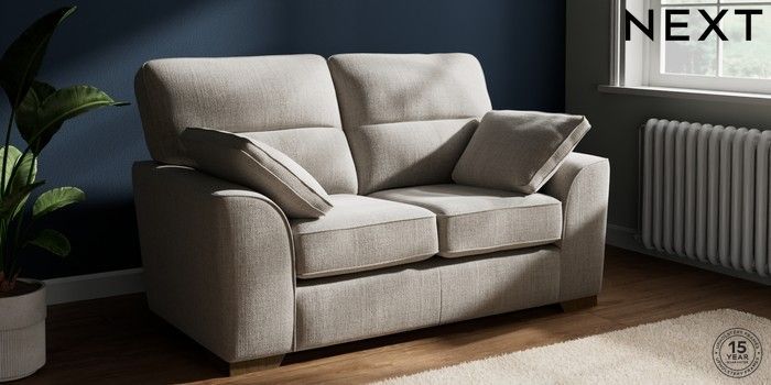 7.2.10 Stamford Highback 2 Seater Small Sofa Chunky Weave Dove Grey Large Square Angle - Mid | Made Click here to use our website with more accessibility support, for example screen readers
