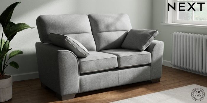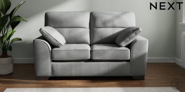 7.2.10 Stamford Highback 2 Seater Small Sofa Chunky Weave Mid Grey Large Square Angle - Gunmetal | Made Click here to use our website with more accessibility support, for example screen readers
