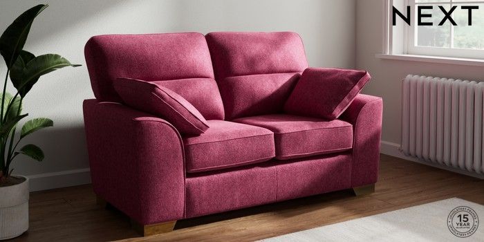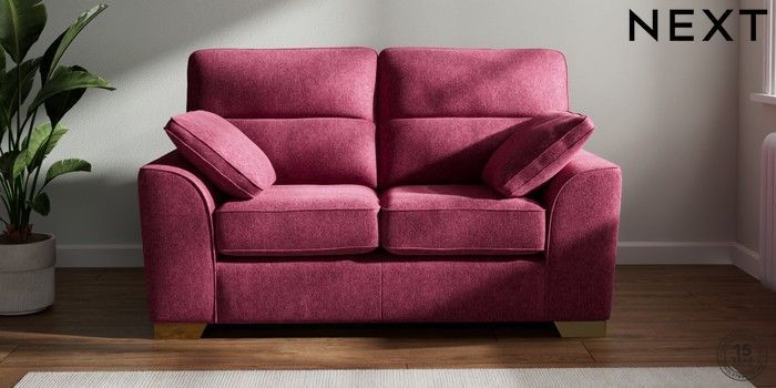 7.2.10 Stamford Highback 2 Seater Small Sofa Cotswold Chenille Dark Raspberry Pink Large Square Angle - Brushed Brass | Made Click here to use our website with more accessibility support, for example screen readers