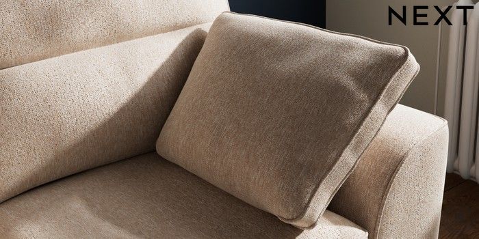 7.2.10 Stamford Highback 2 Seater Small Sofa Cotswold Chenille Light Natural Large Square Angle - Brushed Brass | Made Click here to use our website with more accessibility support, for example screen readers