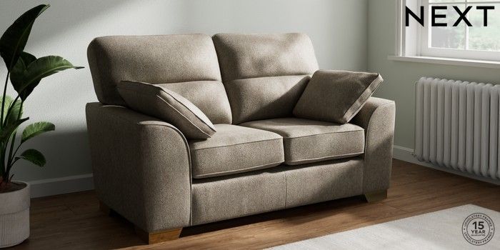 7.2.10 Stamford Highback 2 Seater Small Sofa Cotswold Chenille Mid Mink Brown Large Square Angle - Brushed Brass | Made Click here to use our website with more accessibility support, for example screen readers
