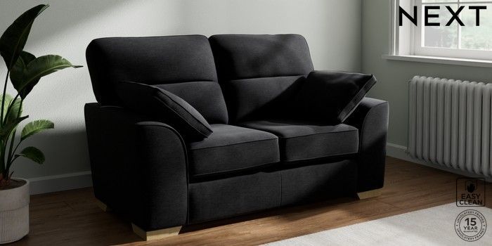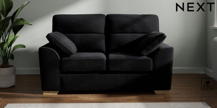 7.2.10 Stamford Highback 2 Seater Small Sofa Fine Chenille Easy Clean Black Large Square Angle - Light | Made Click here to use our website with more accessibility support, for example screen readers