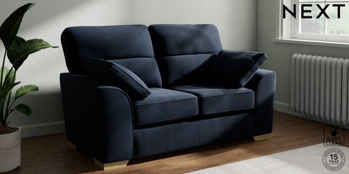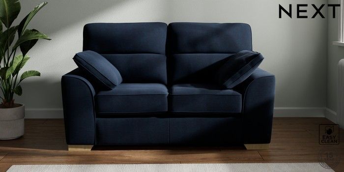 7.2.10 Stamford Highback 2 Seater Small Sofa Fine Chenille Easy Clean Dark Navy Blue Large Square Angle - Light | Made Click here to use our website with more accessibility support, for example screen readers