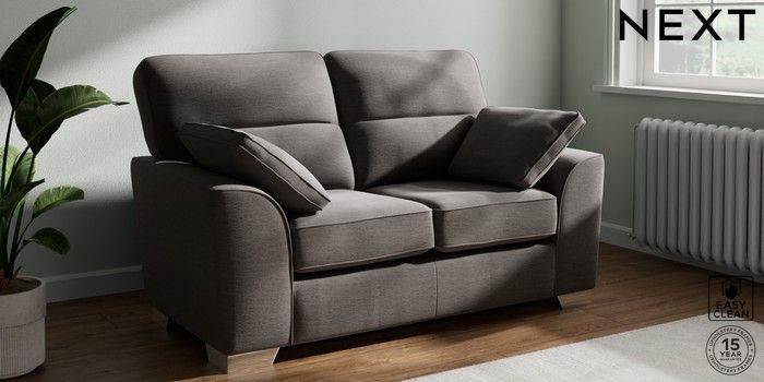 7.2.10 Stamford Highback 2 Seater Small Sofa Fine Chenille Easy Clean Dark Smoke Grey Large Square Angle - Chrome Metal | Made Click here to use our website with more accessibility support, for example screen readers