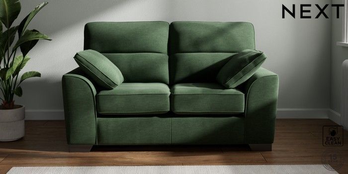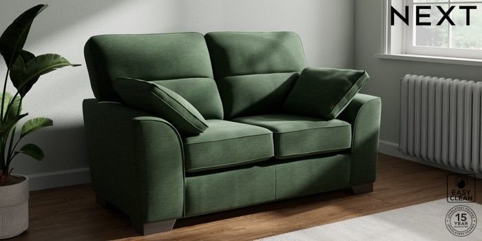 7.2.10 Stamford Highback 2 Seater Small Sofa Fine Chenille Easy Clean Mid Khaki Green Large Square Angle - Gunmetal | Made Click here to use our website with more accessibility support, for example screen readers