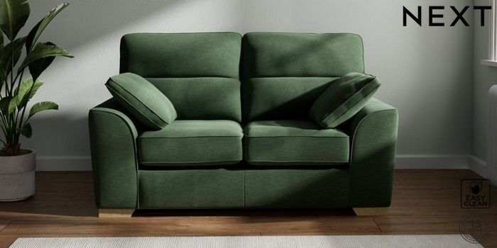 7.2.10 Stamford Highback 2 Seater Small Sofa Fine Chenille Easy Clean Mid Khaki Green Large Square Angle - Light | Made Click here to use our website with more accessibility support, for example screen readers