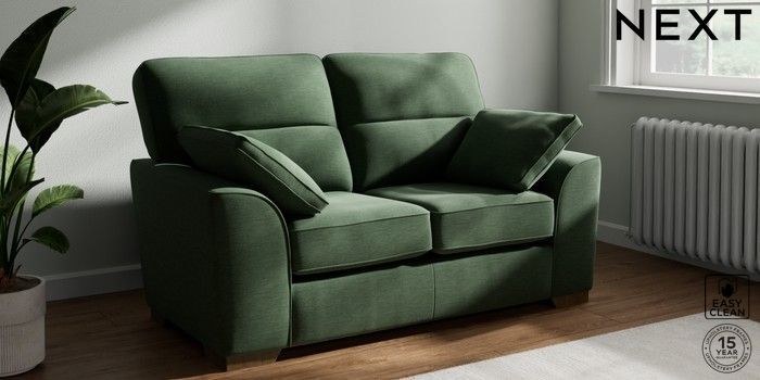 7.2.10 Stamford Highback 2 Seater Small Sofa Fine Chenille Easy Clean Mid Khaki Green Large Square Angle - Mid | Made Click here to use our website with more accessibility support, for example screen readers