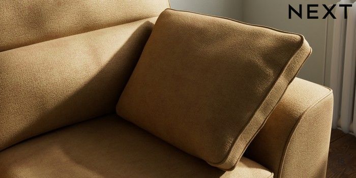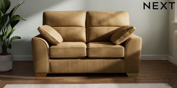 7.2.10 Stamford Highback 2 Seater Small Sofa Luxe Chenille Honey Yellow Large Square Angle - Brushed Brass | Made Click here to use our website with more accessibility support, for example screen readers
