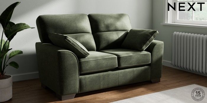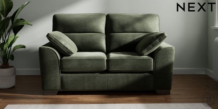 7.2.10 Stamford Highback 2 Seater Small Sofa Luxe Chenille Mid Green Large Square Angle - Gunmetal | Made Click here to use our website with more accessibility support, for example screen readers