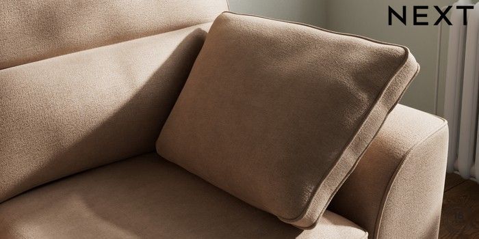 7.2.10 Stamford Highback 2 Seater Small Sofa Luxe Chenille Mid Natural Large Square Angle - Chrome Metal | Made Click here to use our website with more accessibility support, for example screen readers