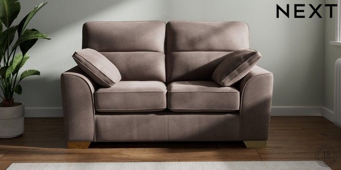 7.2.10 Stamford Highback 2 Seater Small Sofa Luxe Chenille Mink Brown Large Square Angle - Brushed Brass | Made Click here to use our website with more accessibility support, for example screen readers