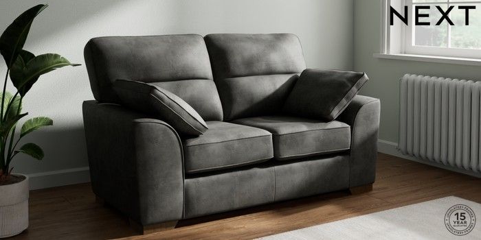 7.2.10 Stamford Highback 2 Seater Small Sofa Monza Faux Leather Easy Clean Dark Grey Large Square Angle - Mid | Made Click here to use our website with more accessibility support, for example screen readers