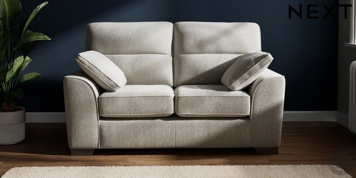 7.2.10 Stamford Highback 2 Seater Small Sofa Multi Weave Light Blue Large Square Angle - Gunmetal | Made Click here to use our website with more accessibility support, for example screen readers