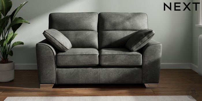 7.2.10 Stamford Highback 2 Seater Small Sofa Plush Chenille Dark Grey Large Square Angle - Chrome Metal | Made Click here to use our website with more accessibility support, for example screen readers