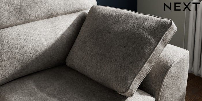 7.2.10 Stamford Highback 2 Seater Small Sofa Plush Chenille Light Grey Large Square Angle - Brushed Brass | Made Click here to use our website with more accessibility support, for example screen readers