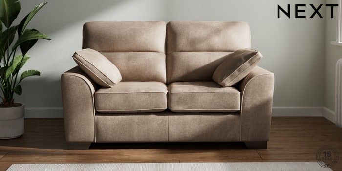 7.2.10 Stamford Highback 2 Seater Small Sofa Plush Chenille Mid Natural Large Square Angle - Gunmetal | Made Click here to use our website with more accessibility support, for example screen readers