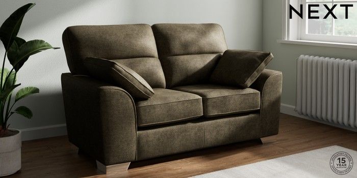 7.2.10 Stamford Highback 2 Seater Small Sofa Plush Chenille Moss Green Large Square Angle - Chrome Metal | Made Click here to use our website with more accessibility support, for example screen readers