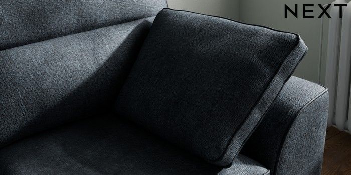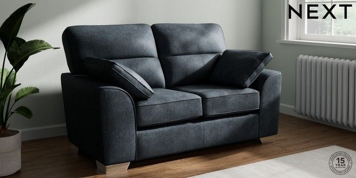 7.2.10 Stamford Highback 2 Seater Small Sofa Plush Chenille Slate Blue Large Square Angle - Chrome Metal | Made Click here to use our website with more accessibility support, for example screen readers