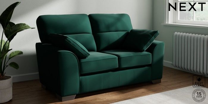 7.2.10 Stamford Highback 2 Seater Small Sofa Plush Velvet Easy Clean Bottle Green Large Square Angle - Gunmetal | Made Click here to use our website with more accessibility support, for example screen readers