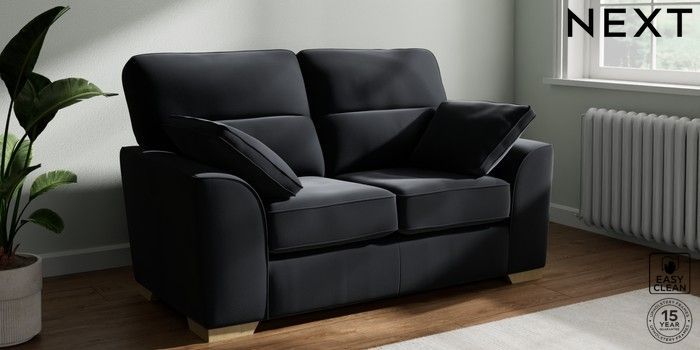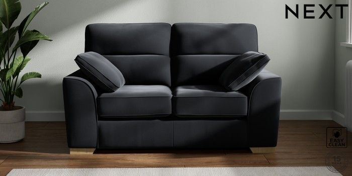 7.2.10 Stamford Highback 2 Seater Small Sofa Plush Velvet Easy Clean Charcoal Grey Large Square Angle - Light | Made Click here to use our website with more accessibility support, for example screen readers