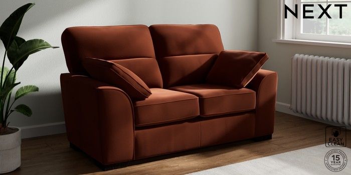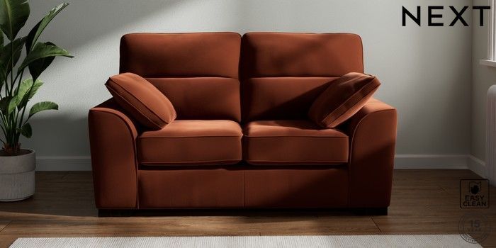 7.2.10 Stamford Highback 2 Seater Small Sofa Plush Velvet Easy Clean Ginger Orange Large Square Angle - Dark | Made Click here to use our website with more accessibility support, for example screen readers