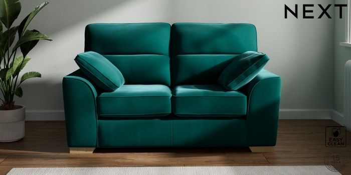 7.2.10 Stamford Highback 2 Seater Small Sofa Plush Velvet Easy Clean Juniper Green Large Square Angle - Light | Made Click here to use our website with more accessibility support, for example screen readers