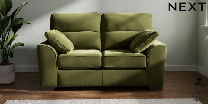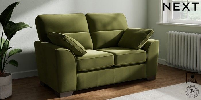 7.2.10 Stamford Highback 2 Seater Small Sofa Plush Velvet Easy Clean Mid Olive Green Large Square Angle - Gunmetal | Made Click here to use our website with more accessibility support, for example screen readers
