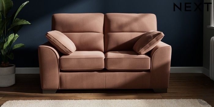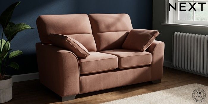 7.2.10 Stamford Highback 2 Seater Small Sofa Relaxed Linen Look Light Rust Brown Large Square Angle - Gunmetal | Made Click here to use our website with more accessibility support, for example screen readers