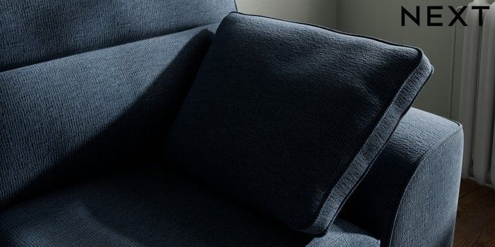 7.2.10 Stamford Highback 2 Seater Small Sofa Ripple Chenille Dark Blue Large Square Angle - Chrome Metal | Made Click here to use our website with more accessibility support, for example screen readers