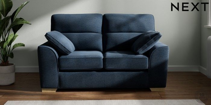 7.2.10 Stamford Highback 2 Seater Small Sofa Ripple Chenille Dark Blue Large Square Angle - Light | Made Click here to use our website with more accessibility support, for example screen readers