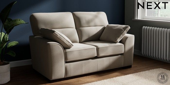 7.2.10 Stamford Highback 2 Seater Small Sofa Ripple Chenille Light Natural Large Square Angle - Dark | Made Click here to use our website with more accessibility support, for example screen readers