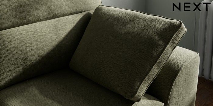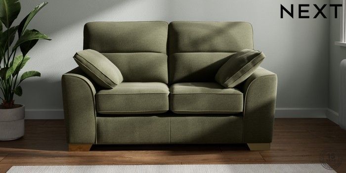 7.2.10 Stamford Highback 2 Seater Small Sofa Ripple Chenille Mid Moss Green Large Square Angle - Brushed Brass | Made Click here to use our website with more accessibility support, for example screen readers