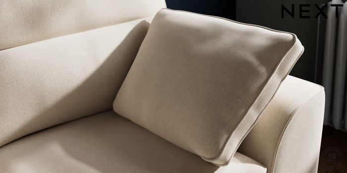 7.2.10 Stamford Highback 2 Seater Small Sofa Studio Chenille Oyster Large Square Angle - Chrome Metal | Made Click here to use our website with more accessibility support, for example screen readers