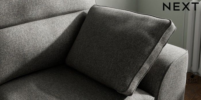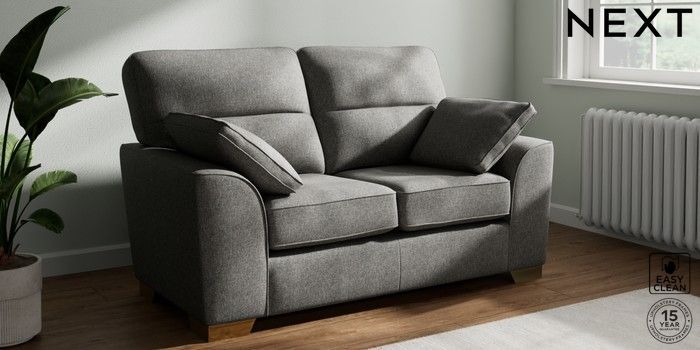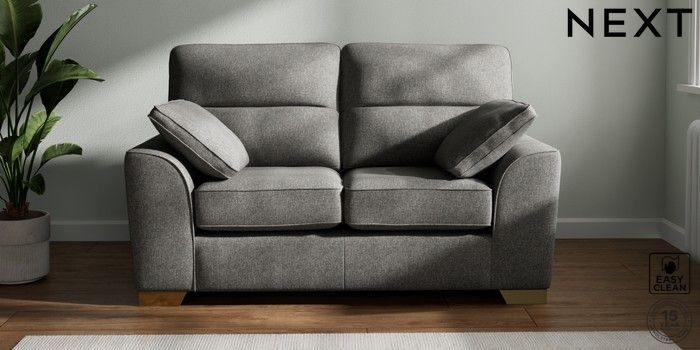7.2.10 Stamford Highback 2 Seater Small Sofa Tweedy Blend Easy Clean Dark Grey Large Square Angle - Brushed Brass | Made Click here to use our website with more accessibility support, for example screen readers