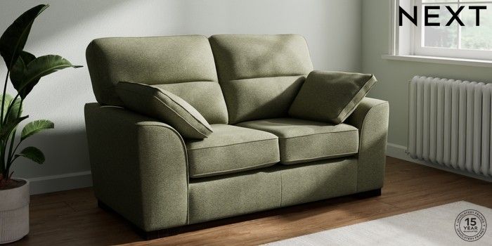 7.2.10 Stamford Highback 2 Seater Small Sofa Tweedy Chenille Mid Moss Green Large Square Angle - Dark | Made Click here to use our website with more accessibility support, for example screen readers