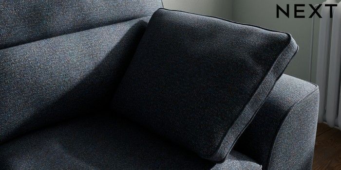 7.2.10 Stamford Highback 2 Seater Small Sofa Tweedy Chenille Navy Blue Large Square Angle - Chrome Metal | Made Click here to use our website with more accessibility support, for example screen readers