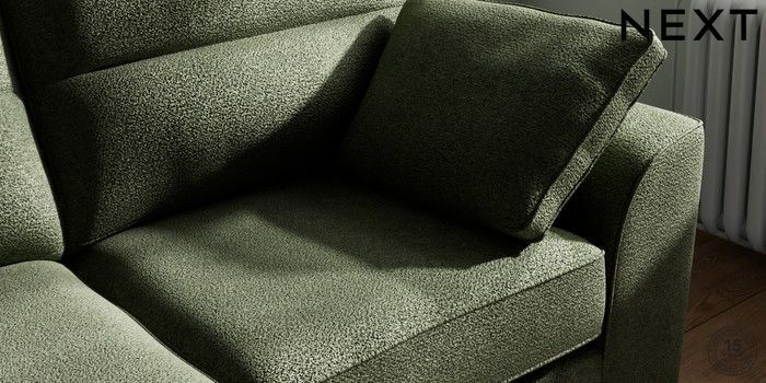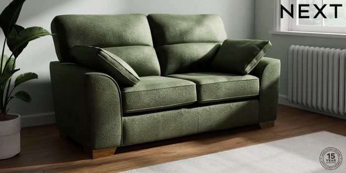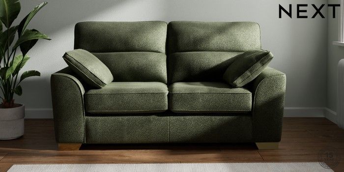 7.2.10 Stamford Highback 2 Seater Sofa Boucle Chenille Dark Moss Green Large Square Angle - Brushed Brass | Made Click here to use our website with more accessibility support, for example screen readers