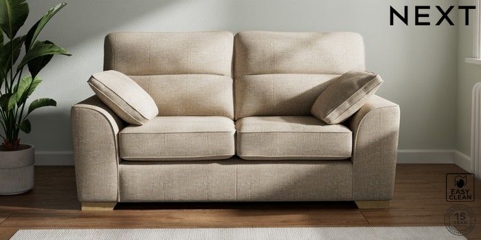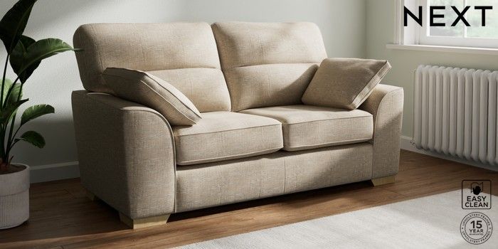 7.2.10 Stamford Highback 2 Seater Sofa Boucle Weave Easy Clean Dark Natural Large Square Angle - Light | Made Click here to use our website with more accessibility support, for example screen readers