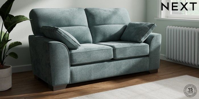 7.2.10 Stamford Highback 2 Seater Sofa Chunky Chenille Light Teal Green Large Square Angle - Gunmetal | Made Click here to use our website with more accessibility support, for example screen readers