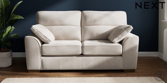 7.2.10 Stamford Highback 2 Seater Sofa Chunky Chenille Oyster Large Square Angle - Mid | Made Click here to use our website with more accessibility support, for example screen readers